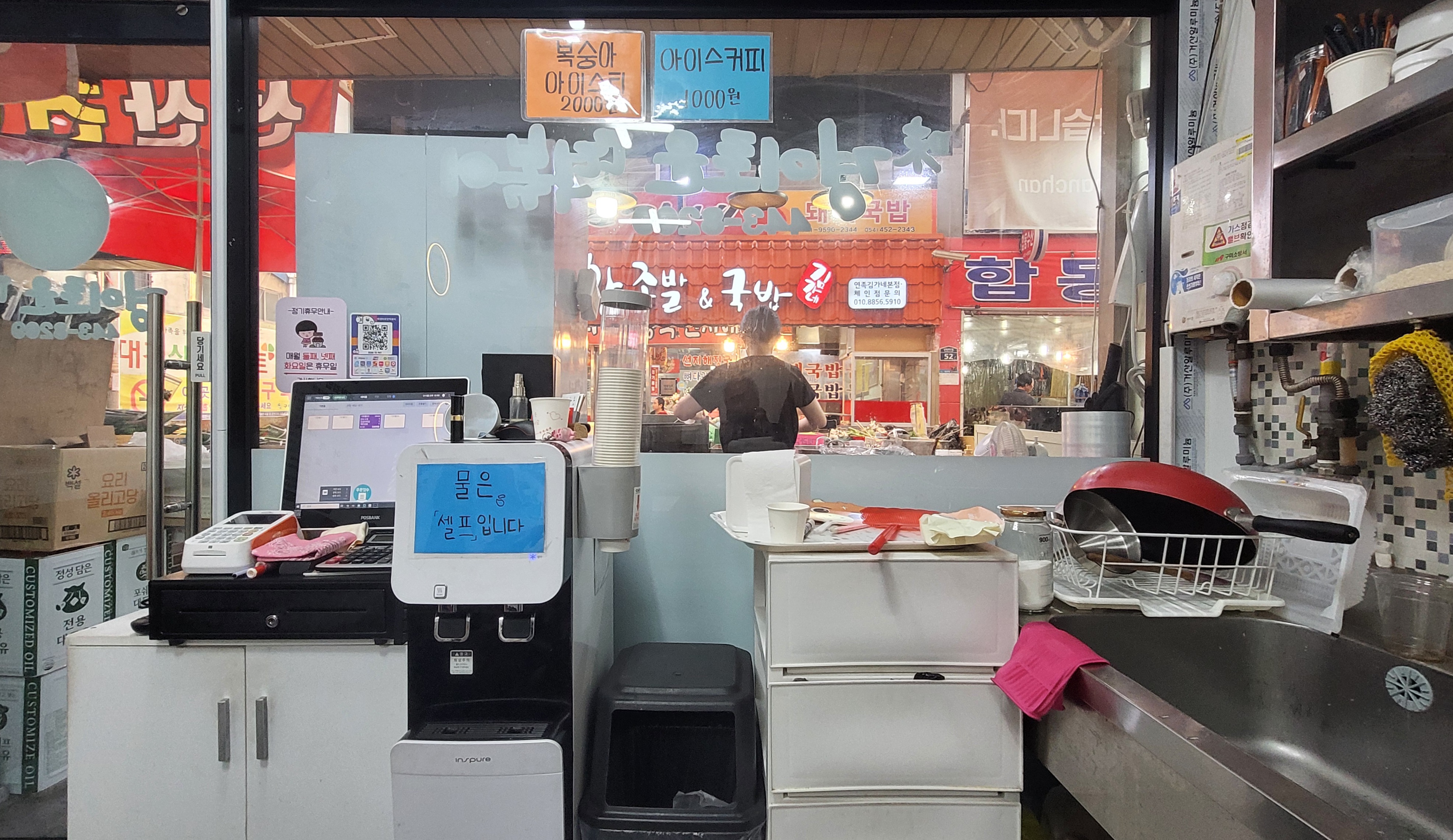 < 식당 내부에 자리하고 있는 '셀프' 코너 >