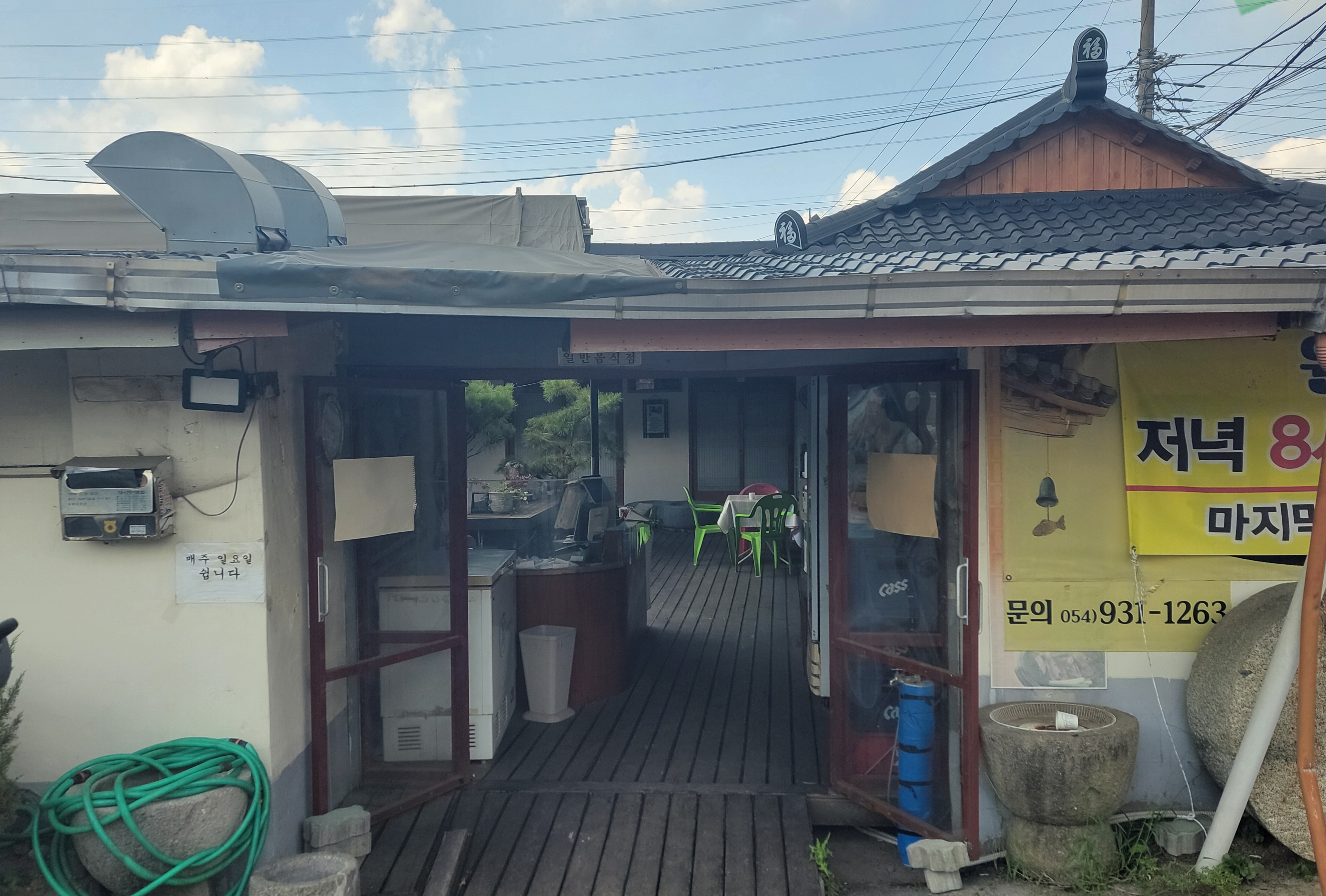 식당 앞에는 넓은 주차장이 자리하고 있으면서 많은 차량들이 주차하고 있어 좀 유명한 식당인 것 같다고 생각을 하는데, 하지만 건물이 너무나 초라하면서 매우 낮은 양철지붕을 하고 있는 건축물이다.