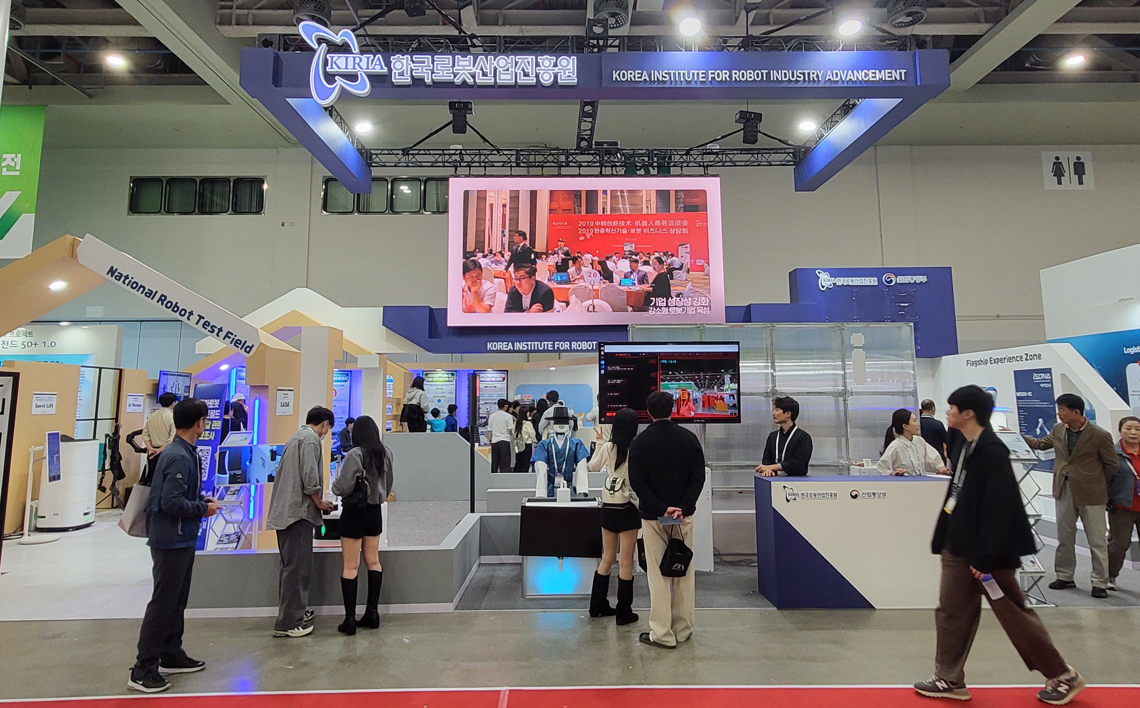 산업통상부 로봇 전문 국책기관이 되는 '한국로봇산업진흥원' 은 국가 로봇 테스트 필드 사업 및 로봇 플래그 쉽 지역거점 사업을 구축하는 등 정부 차원의 로봇 정책을 홍보하며 다양한 로봇 실증 환경을 전시한다.