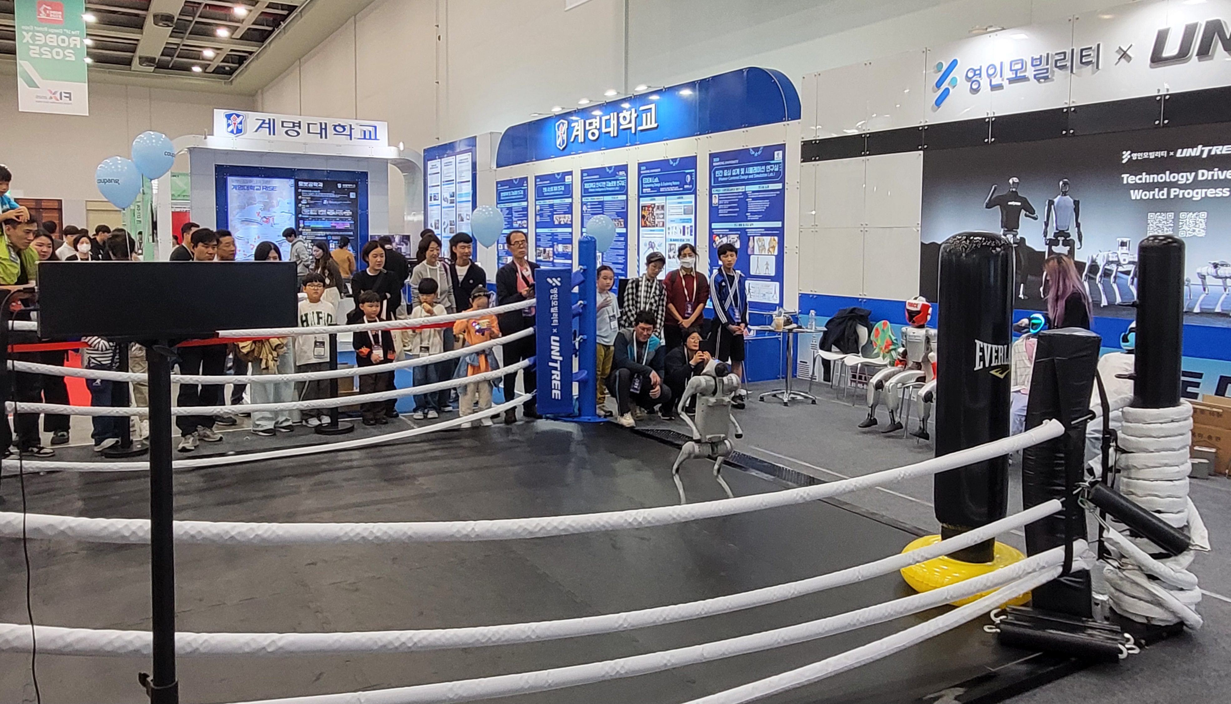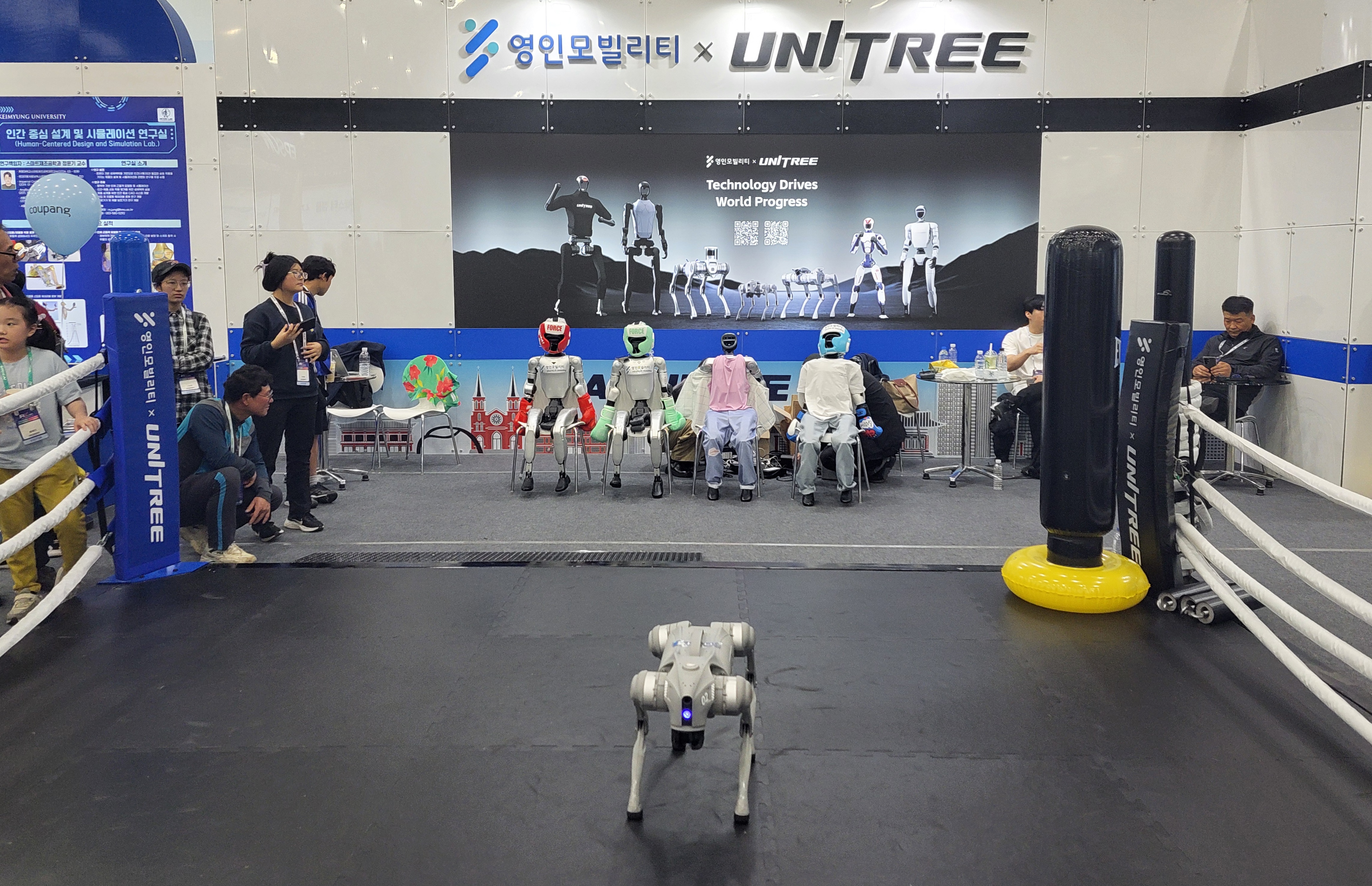 '영인모빌리티' 는 중국 유니트리 로보틱스와 협력해 국내 최초 휴머노이드 ‘G1’ 의 복싱 매치를 진행하는데, 두 로봇이 헤드기어와 권투장갑을 착용하고 링 위에 올라 펀치와 발동작을 주고 받으며 흥미진진한 경기를 펼쳐진다.