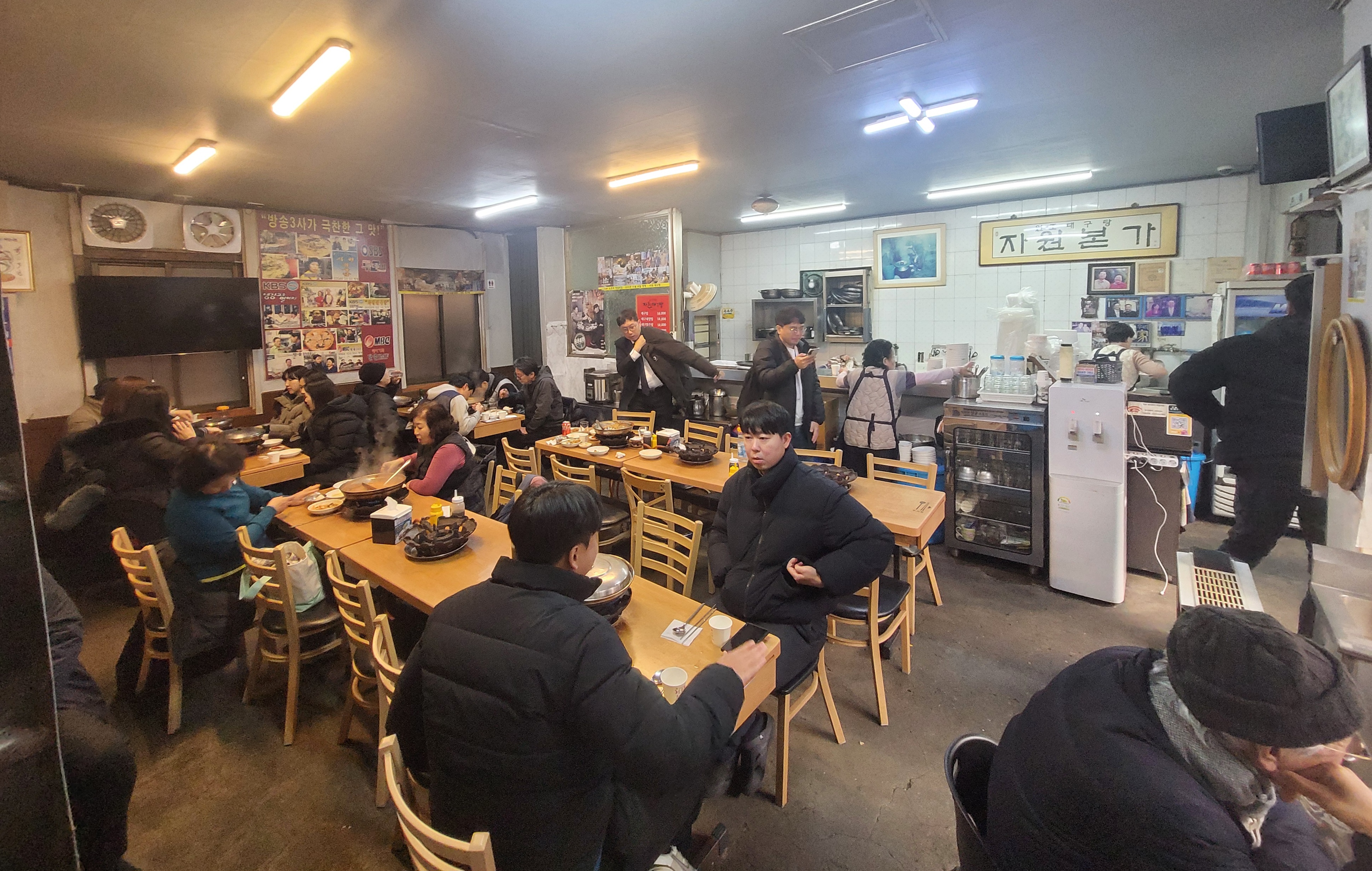 대구탕골목 내에 있는 많은 식당 중 골목 입구에 자리하고 있는 '자원원조대구탕' 식당으로 안내를 하는데, 식당 1층에는 너무나 많은 식객들이 대구탕을 즐기고 있어 주인장은 일행을 식당 2층으로 안내한다.