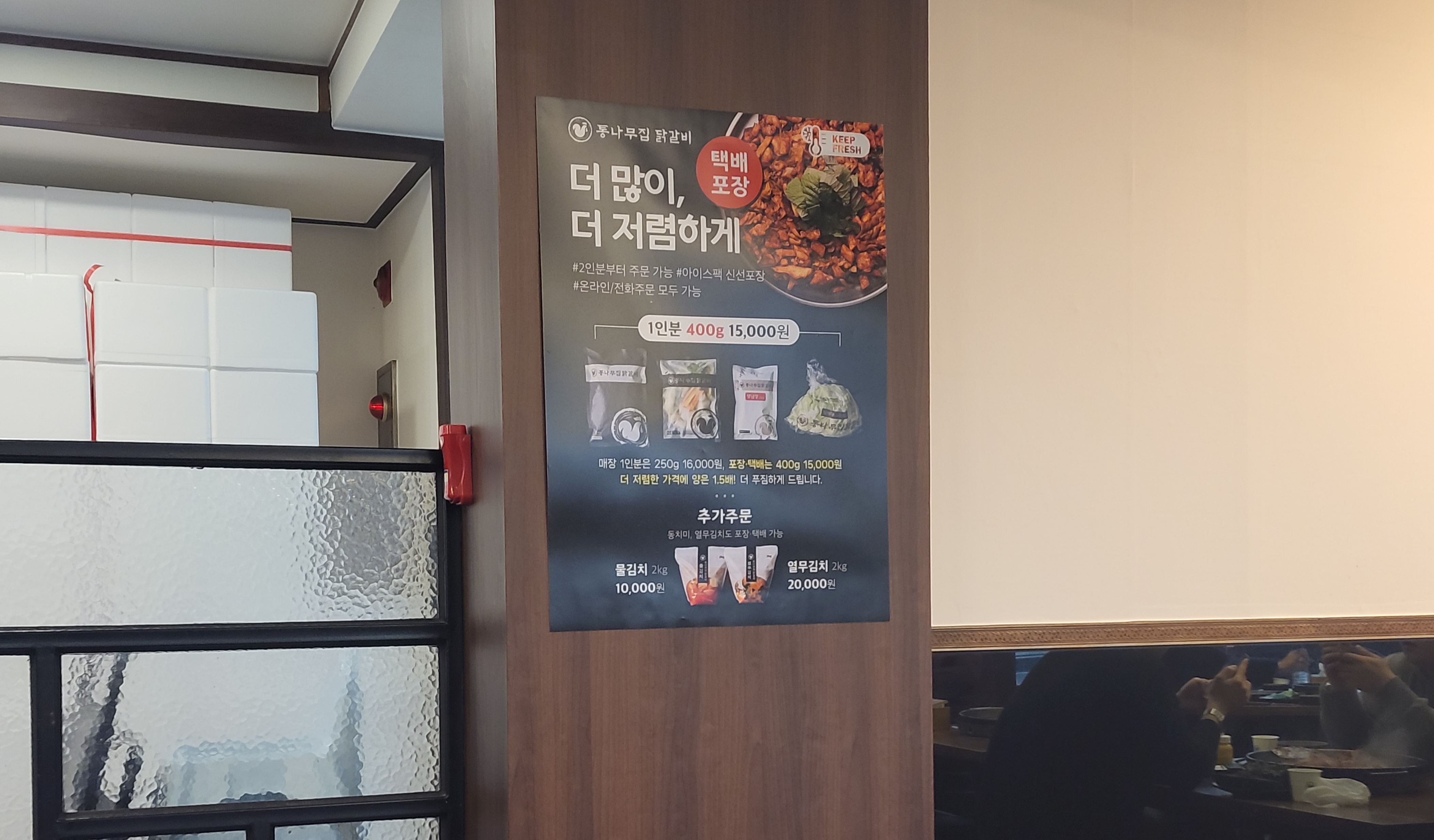 < 식당의 벽면에 부착하고 있는 '홍보물' >
