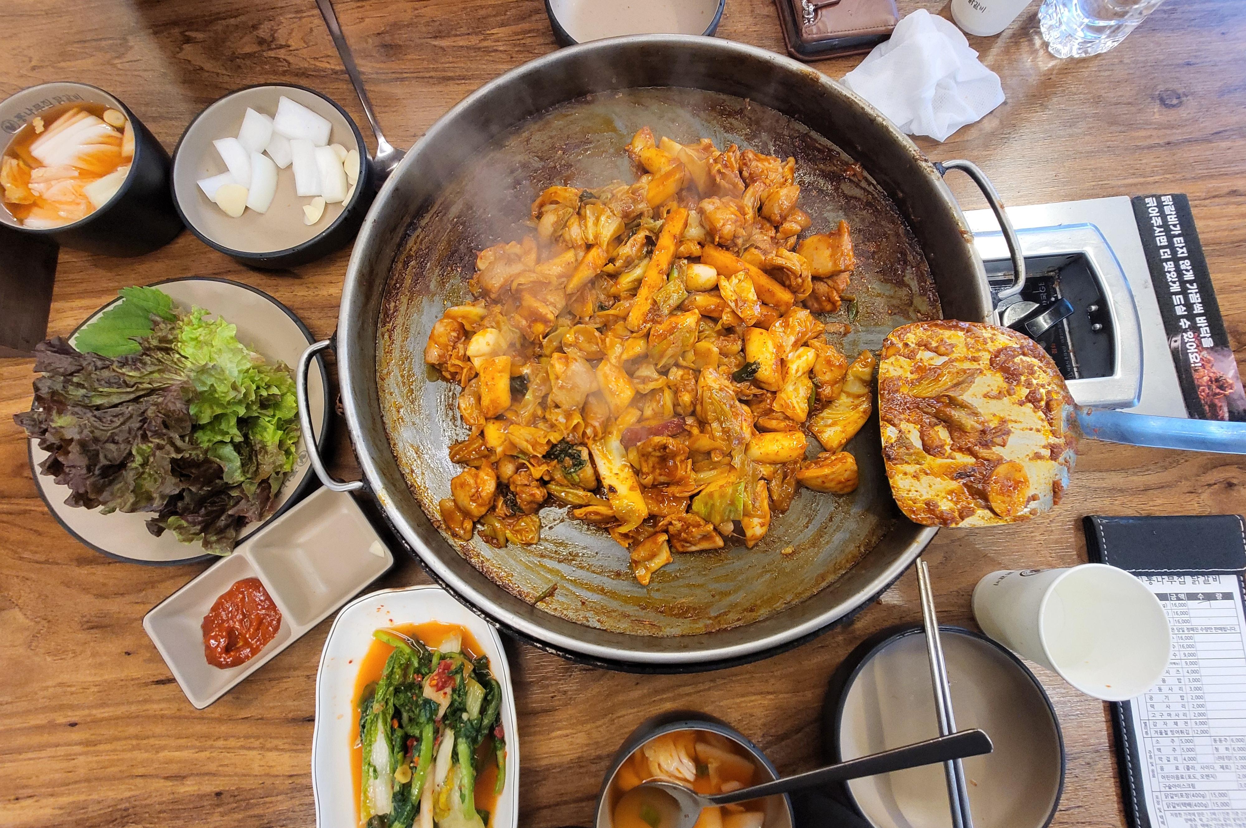 2) 통나무집 닭갈비 본점에서 닭갈비를 즐기면서.