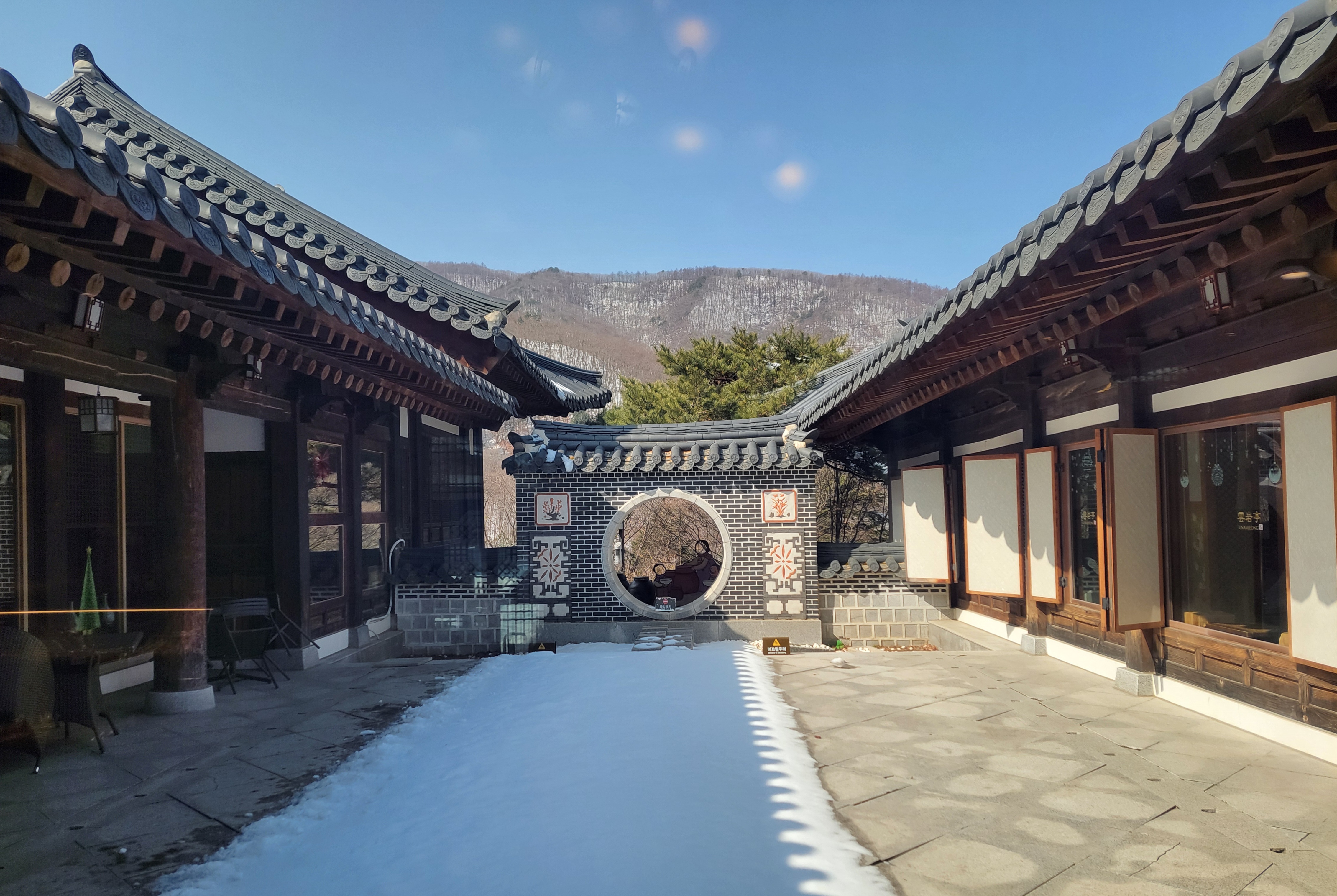 하이원 그랜드 호텔 뒤편으로 만들어져 있는 정원을 통과하여 5분 정도 걸어가면 솟을대문을 만나는데, 솟을대문 입구에 카페에서 판매하고 있는 커피 가격표가 붙어있다.
